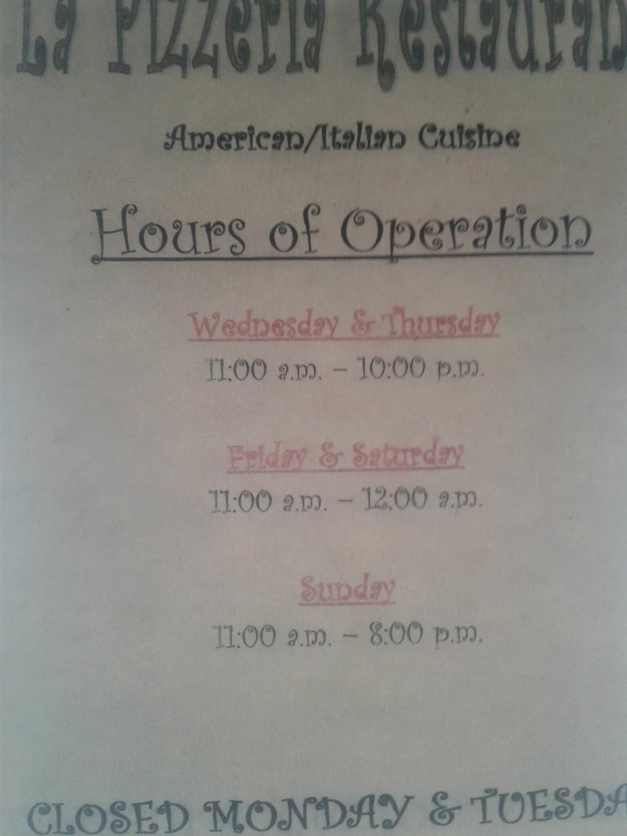 Lapizzeria Restaurant Menu (Update 2025)